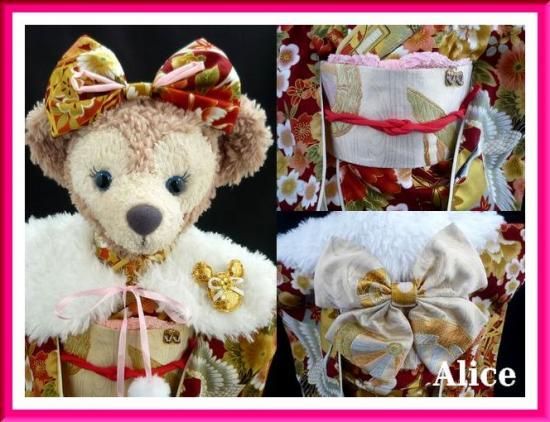ダッフィー シェリーメイ着物 ケープ付紅色地鶴・梅・桜柄 振袖セット No.12 限定1